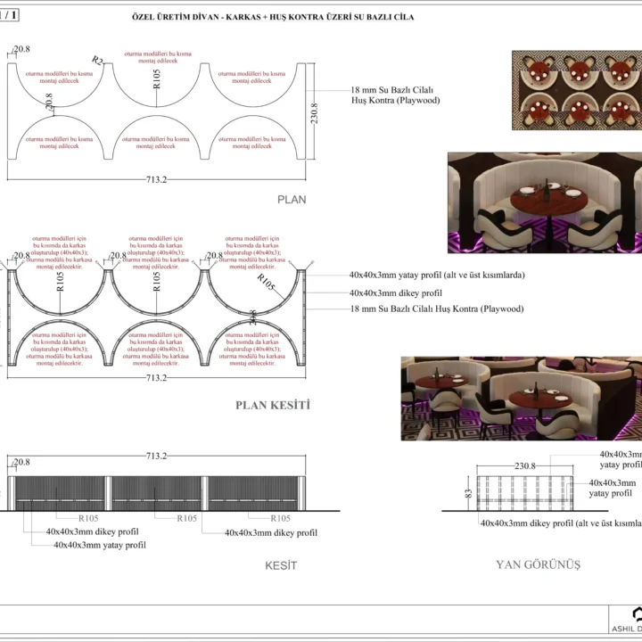 | Scope | Complete design and supply of all furniture, tables, chairs, benches, wall panels, mirrors, artificial plants, and decorative elements |