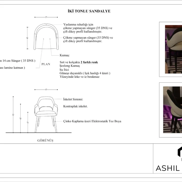 | Chairs | Custom-designed and manufactured from scratch per client request |